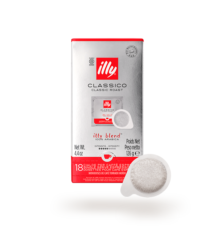 Die perfekte Balance zwischen Säure und Bitterkeit. Der sanfte Geschmack von CLASSICO unterstreicht die süßen und floralen Noten des einzigartigen illy Blends aus 100% Arabica-Bohnen. Hinzu kommen sanfte Noten von Karamell, Orangenblüte und Jasmin mit einem süssen Nachgeschmack. Für alle Kaffeeliebhaber, die einen milden und ausgewogenen Geschmack bevorzugen. Die Verpackung beinhaltet 18 E.S.E. Kaffeepads in Einzelportionen, klassische Röstung.